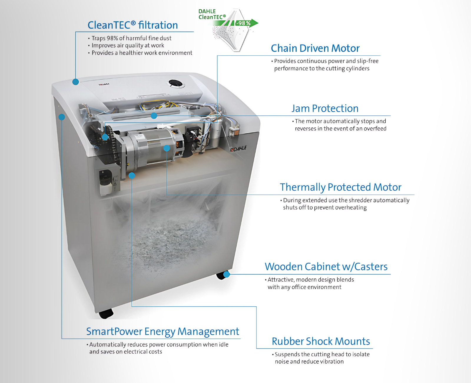 Dahle North America Inc. introduces exceptional products that are a benchmark for Quality and Innovation. Engineered in Germany, Dahle Shredders are your best line of defense against data theft in various industries. Dahle Shredders, developed with unparalleled expertise have their applications in multiple environments including your Homes, Offices, Departments, and Industries.